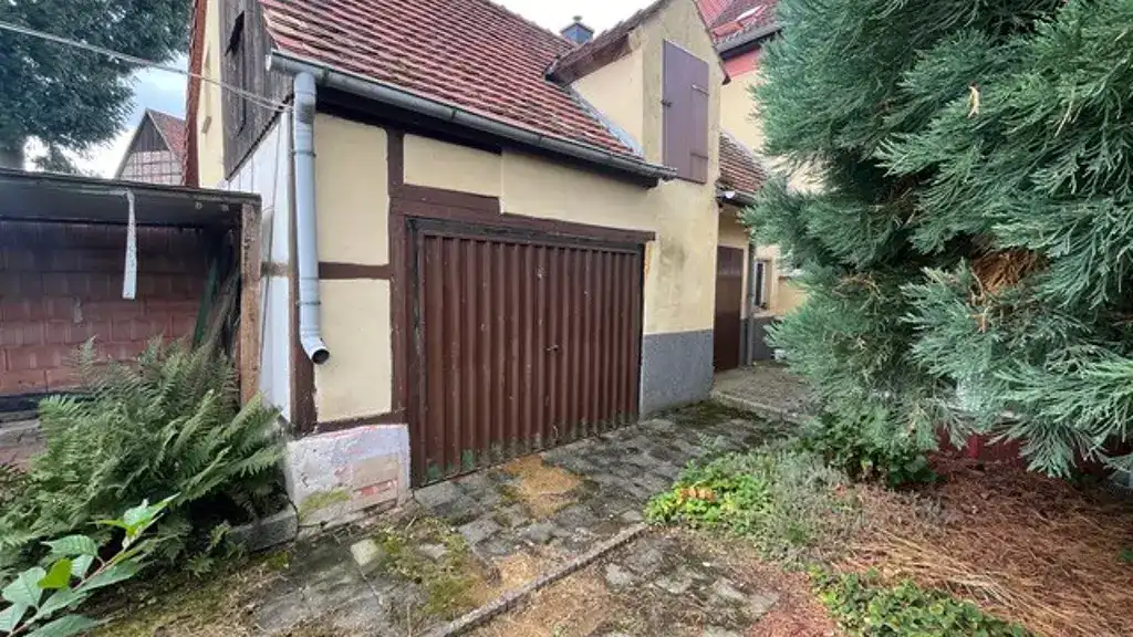 Inmitten einer ruhigen, gewachsenen Nachbarschaft präsentiert sich dieses einladende Einfamilienhaus als echtes Wohlfühlobjekt für alle, die Wert auf ein harmonisches Wohnumfeld legen. Das im Jahr 1927 errichtete Haus verbindet historischen Charme mit einer soliden Grundsubstanz und bietet auf rund 100 m² Wohnfläche ideale Voraussetzungen für Paare, kleine Familien oder Menschen, die sich ihren Wohntraum nach eigenen Vorstellungen gestalten möchten. Wohnkomfort mit vielen Möglichkeiten Die Raumaufteilung des Hauses ist klassisch und funktional gestaltet – perfekt, um individuelle Wohnideen umzusetzen. Große Fenster sorgen für ein angenehmes Tageslicht und schaffen eine freundliche Atmosphäre. Die Fenster wurden im Jahr 2000 erneuert und sind mit Rollläden ausgestattet, was zusätzlichen Komfort, Schutz und Privatsphäre bietet. Platz für Hobby, Auto und mehr Zur Immobilie gehört eine praktische Garage mit ca. 14 m² Nutzfläche. Sie eignet sich nicht nur zum sicheren Abstellen eines Fahrzeugs, sondern bietet auch Raum für Werkstatt, Fahrräder oder Gartengeräte. Großzügiges Grundstück für Erholung und Gestaltung Das 423 m² große Grundstück bietet viel Platz für Freizeit, Gartenprojekte oder entspannte Stunden im Freien. Ob gemütliche Sitzecke, Spielbereich oder liebevoll angelegter Garten – hier können Sie Ihre persönlichen Vorstellungen verwirklichen. Lage mit Lebensqualität Die ruhige Wohnlage überzeugt durch ein angenehmes Umfeld, kurze Wege zu alltäglichen Einrichtungen und eine gute Anbindung an die umliegenden Städte. Ein idealer Ort für alle, die Ruhe suchen, aber dennoch flexibel bleiben möchten. Hinweis: Alle Angaben stammen vom Eigentümer und wurden von uns nicht überprüft.Besichtigungstermine
